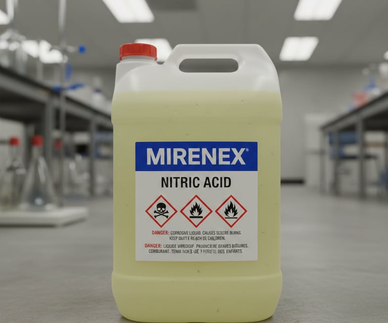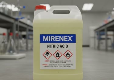 L'Acide Nitrique (HNO3) est l'un des acides minéraux les plus importants de l'industrie chimique. C'est un agent hautement corrosif, un oxydant puissant et un intermédiaire essentiel pour de nombreuses chaînes de production.