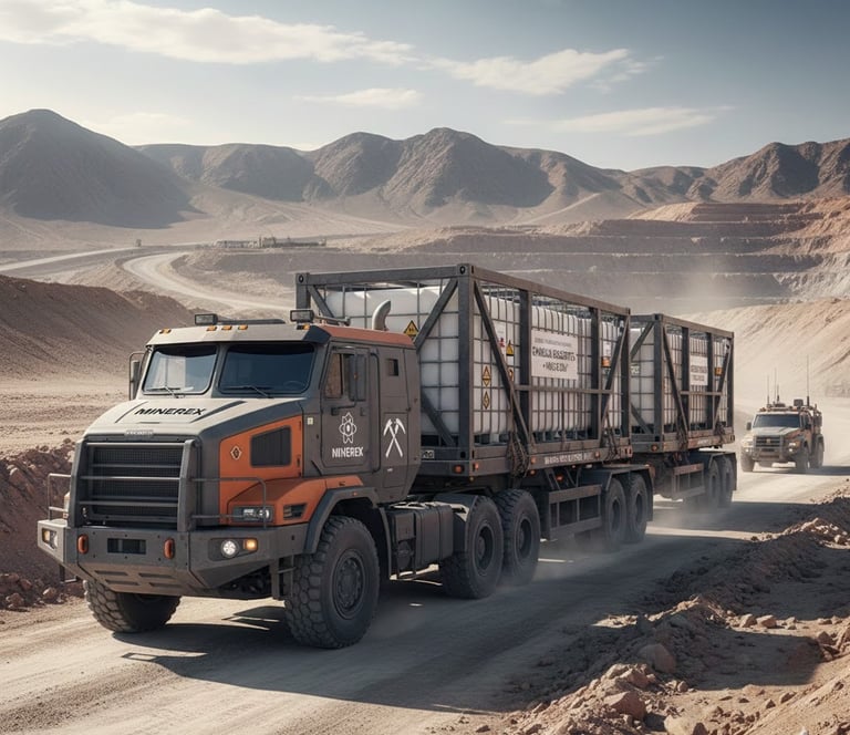 En lien avec sa vision d'innovation (notamment avec les substituts de cyanure), Minerex optimise ses trajets pour réduire l'empreinte carbone de la logistique minière :